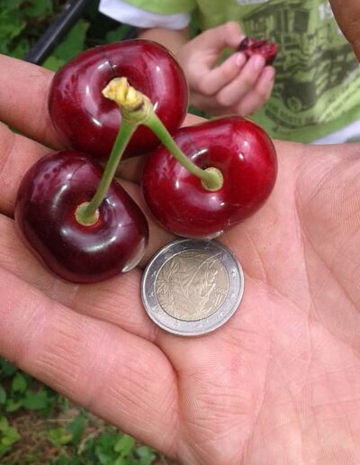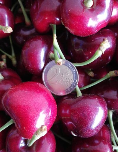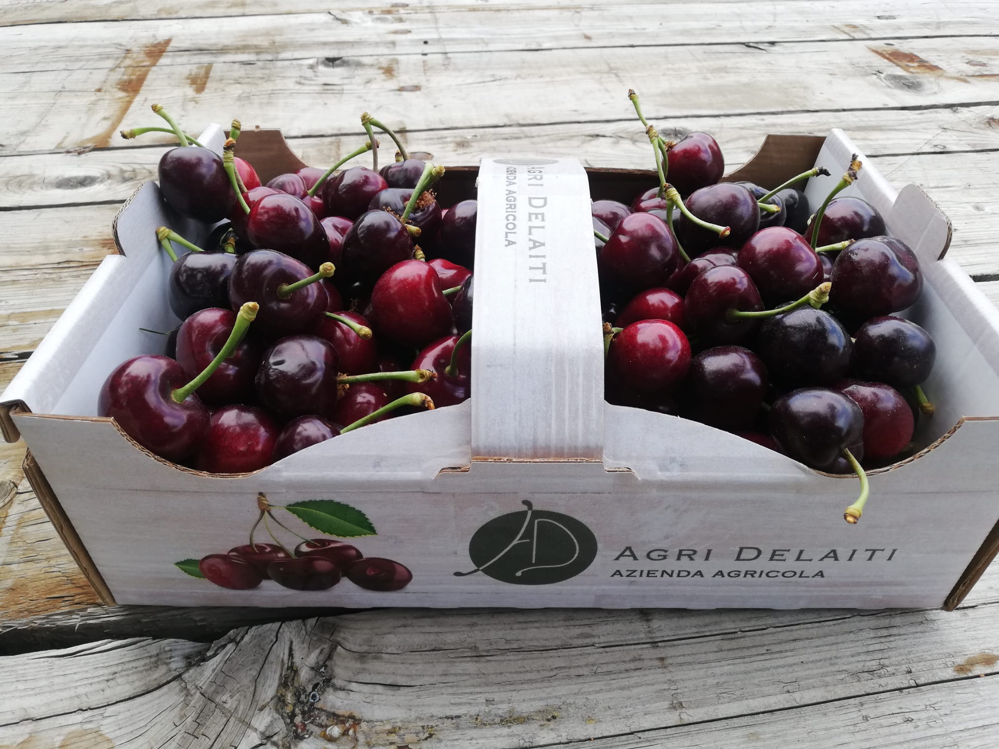 Agri Delaiti produce varietà di ciliegie studiate per ottenere il miglior risultato di sempre: un frutto di grande calibro (sopra ai 28/30 mm di diametro ), di colore rosso brillante e dal punto di vista organolettico croccanti e dolce.